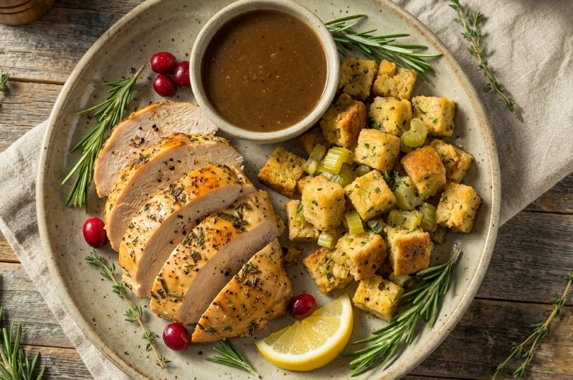 Wheatless Thanksgiving Feast – Herb-Roasted Turkey with Gluten-Free Stuffing and Gravy